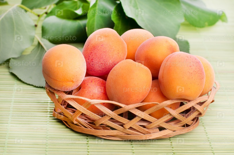 Абрикосы с зелеными листьями