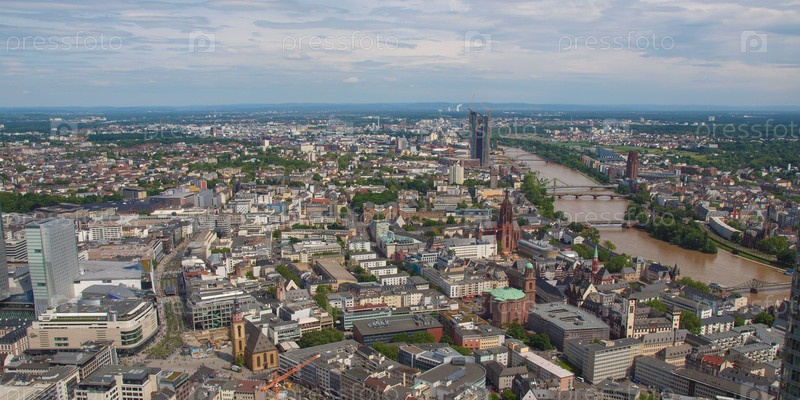 Панорама города Франкфурт-на-Майне в Германии с воздуха