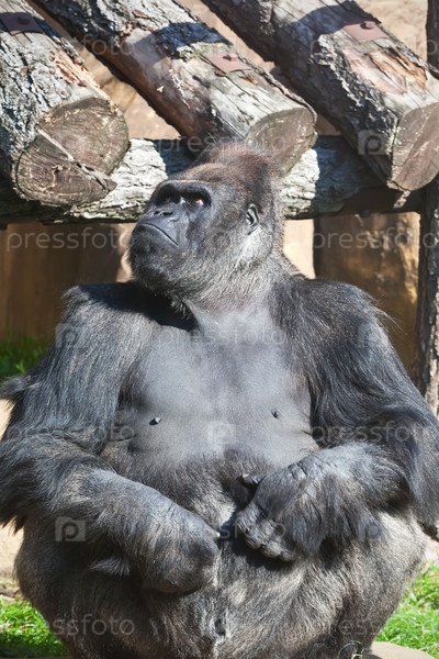 Доминантный самец в группе горилл