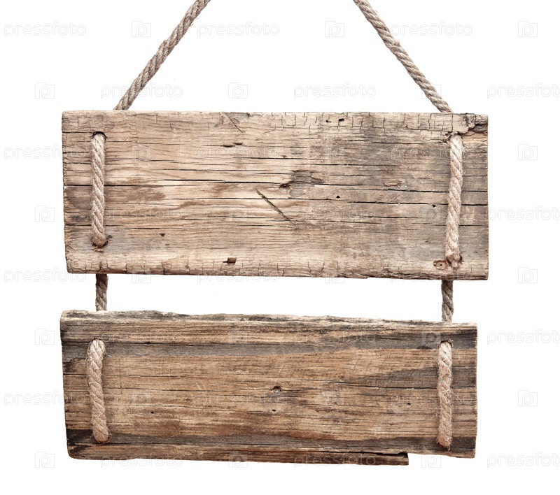 Пустой деревянный знак висит на веревке, изолированный на белом