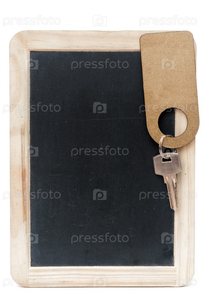Ключ с пустым брелоком на деревянной школьной дощечке