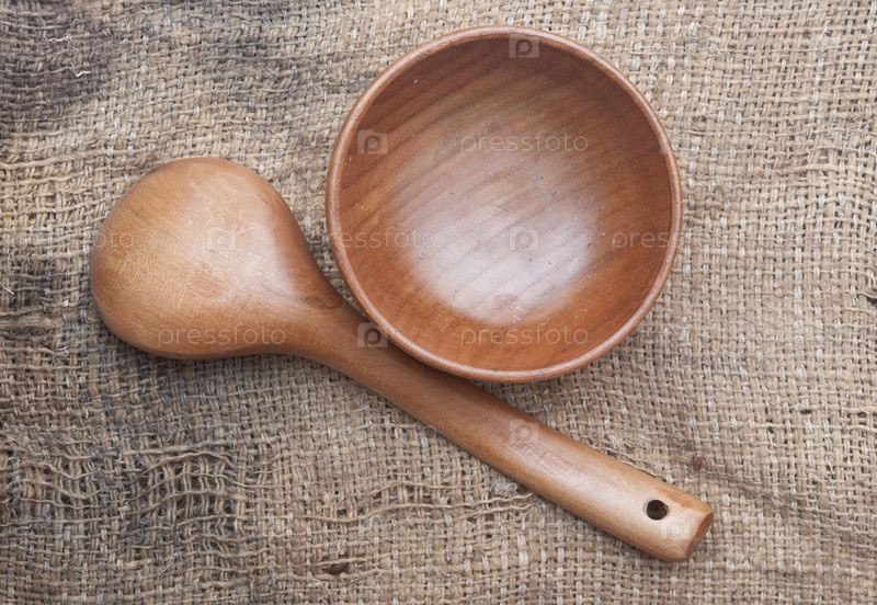 Деревянная посуда на старой мешковине