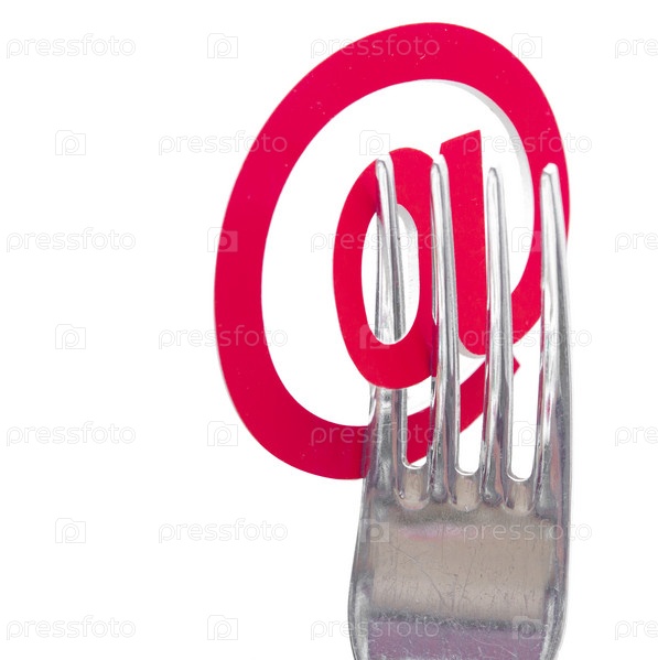 Символ электронной почты на вилке, изолированный на белом фоне