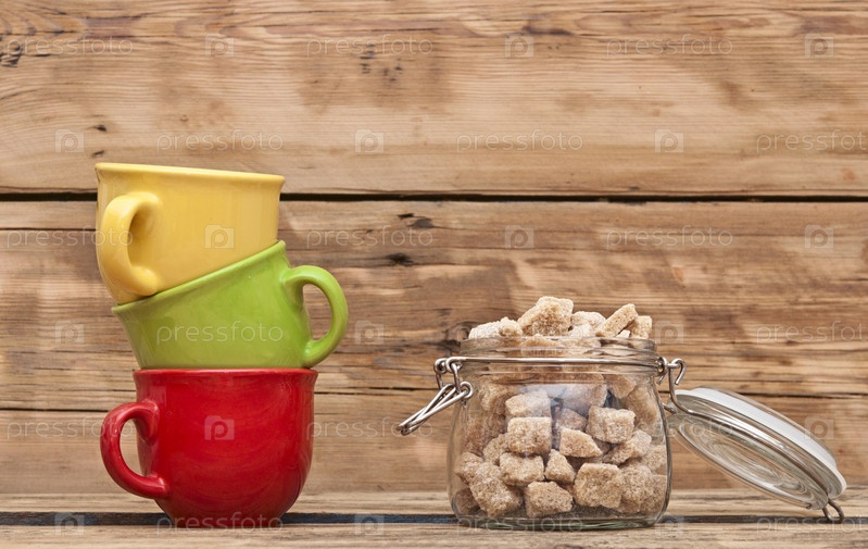 Кубики коричневого сахара в стеклянной банке крупным планом