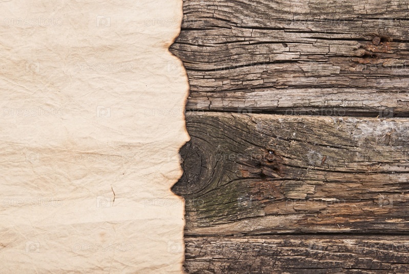 Обгоревшая старая бумага на древесине