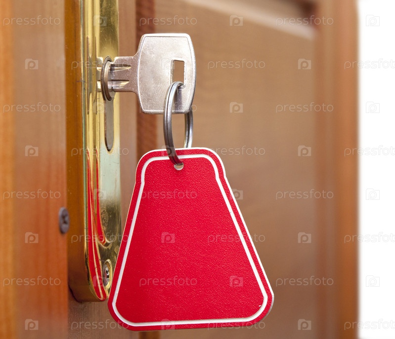 Ключ с брелоком в замочной скважине