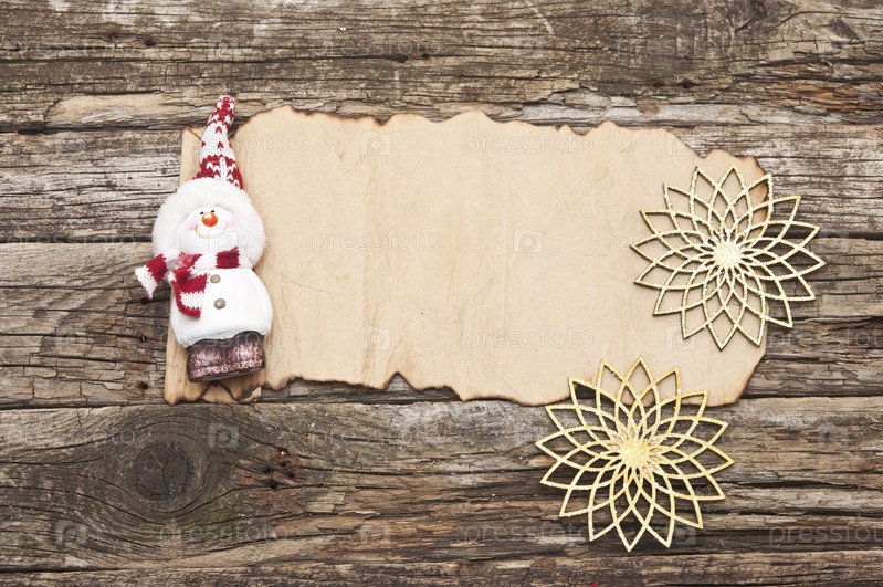 Старая бумага с счастливый снеговик