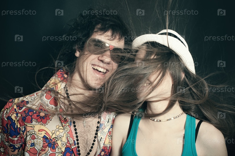 Студийный портрет молодых влюбленных мужчины и женщины на черном фоне