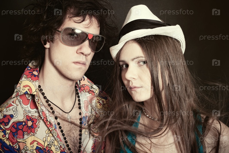 Студийный портрет молодых влюбленных мужчины и женщины на черном фоне