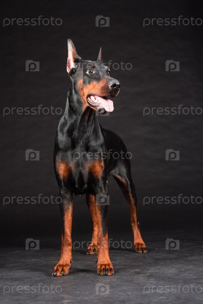 Доберман на черном фоне