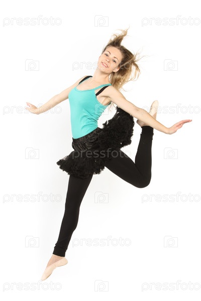 Студийный портрет современной танцовщицы на белом фоне