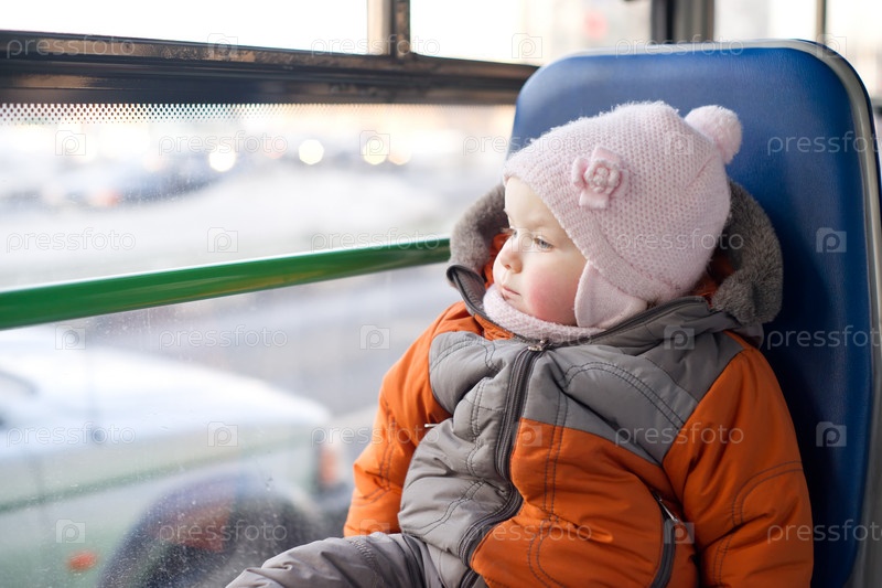 Ребенок в городском автобусе на сиденье