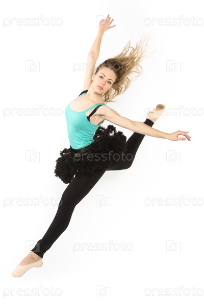 Студийный портрет современной танцовщицы на белом фоне