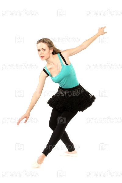 Студийный портрет современной танцовщицы на белом фоне