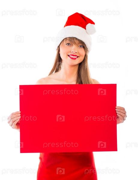 Рождественская девушка с красным баннером на белом фоне