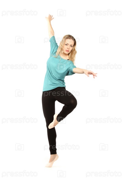 Молодая красивая танцовщица позирует в студии