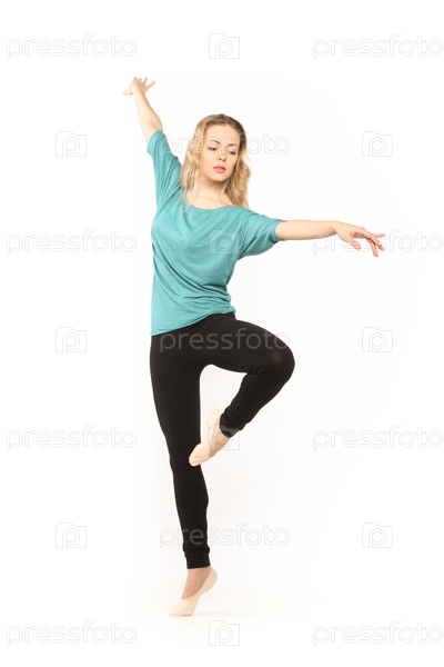 Молодая красивая танцовщица позирует в студии