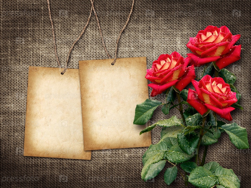 Открытка с красными розами в винтажном стиле
