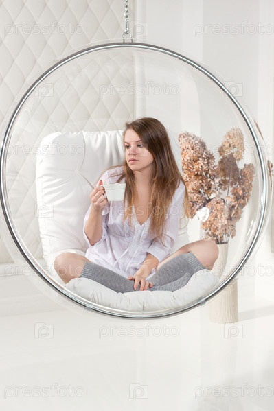 Девушка сидит в круглом кресле