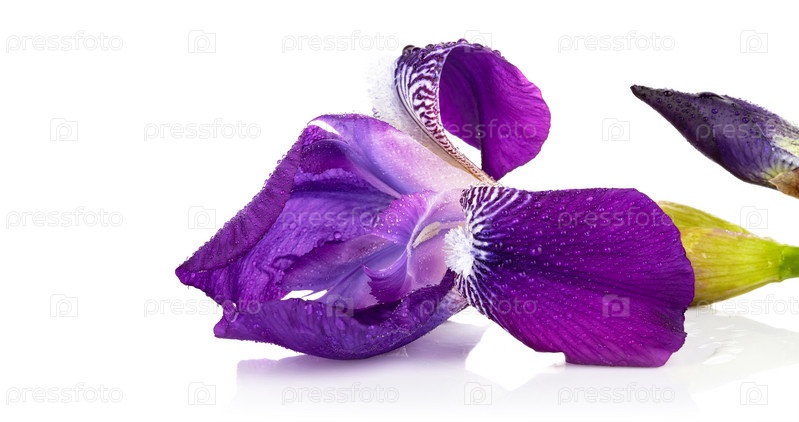 Фиолетовый ирис в каплях росы