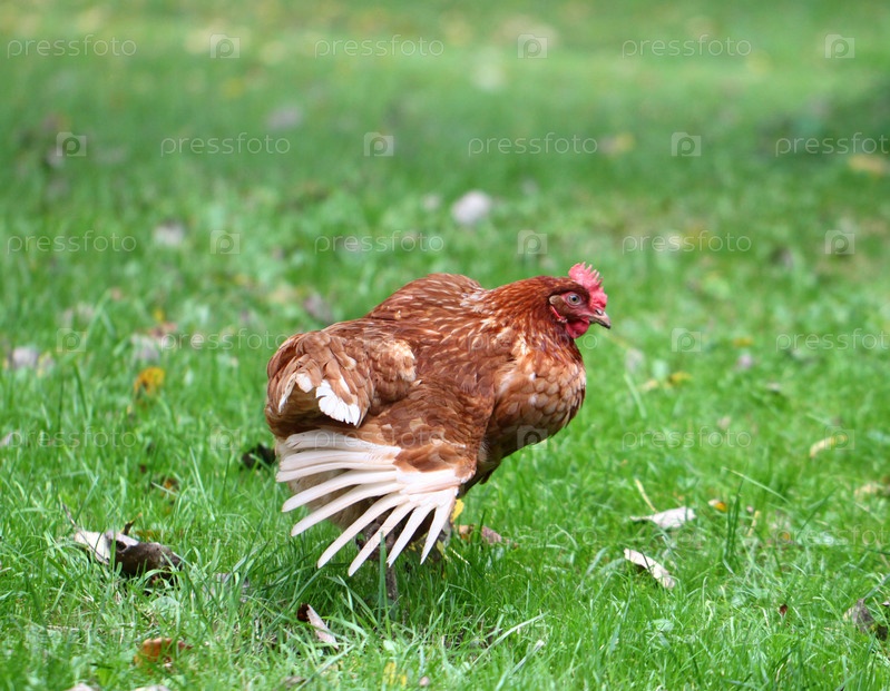 Курица на зеленом поле