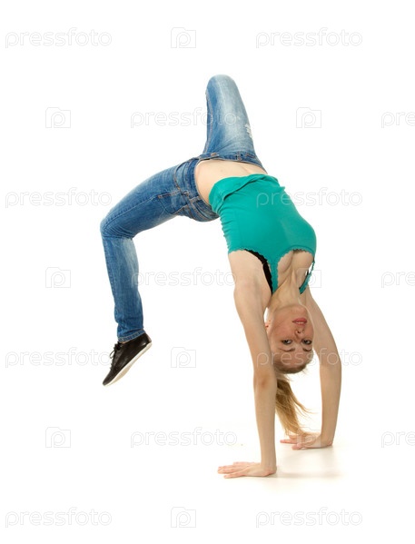 Женщина стоит на руках