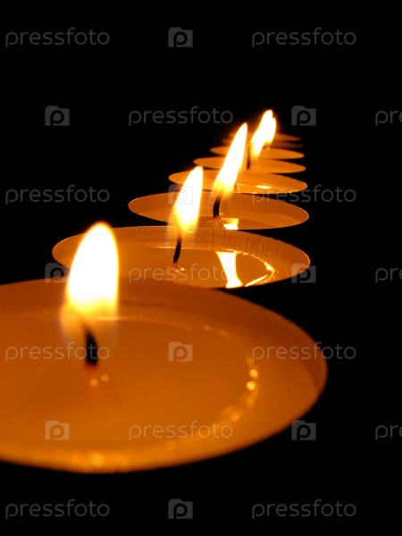 Свечи, выставленные в ряд, горят в темноте