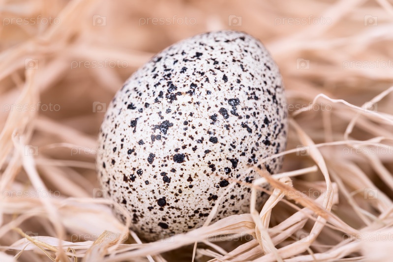Перепелиные яйца в соломе крупным планом