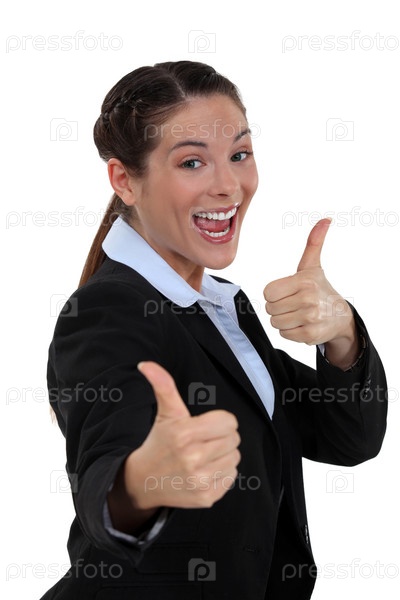 Бизнес-леди держит палец вверх
