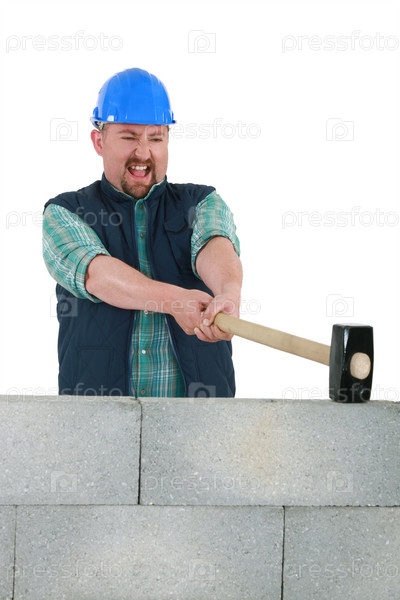 Человек разрушает стену кувалдой