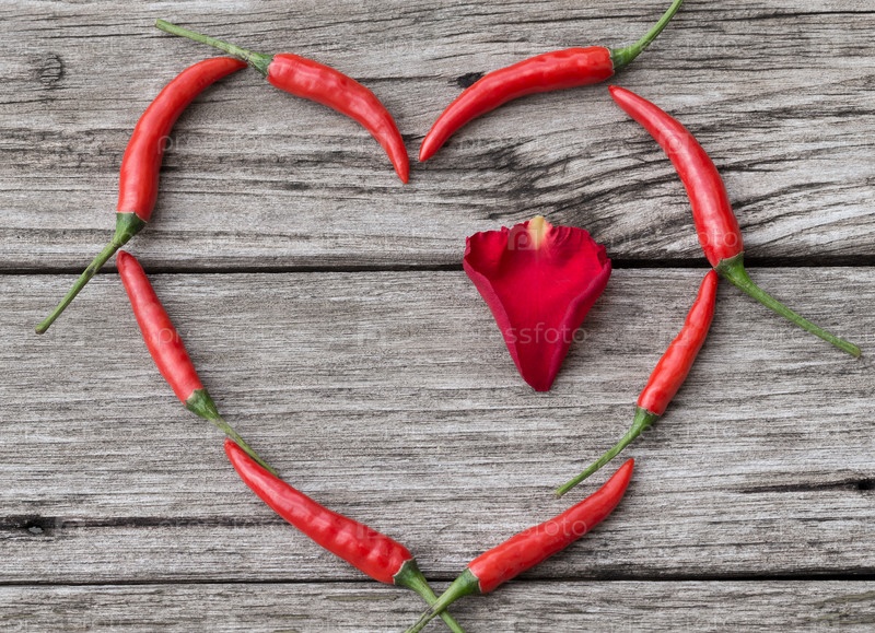 Сердце из перцев и лепестков розы
