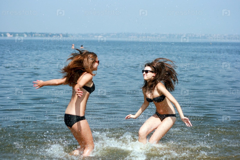 Две молодые девушки, развлекающиеся на пляже