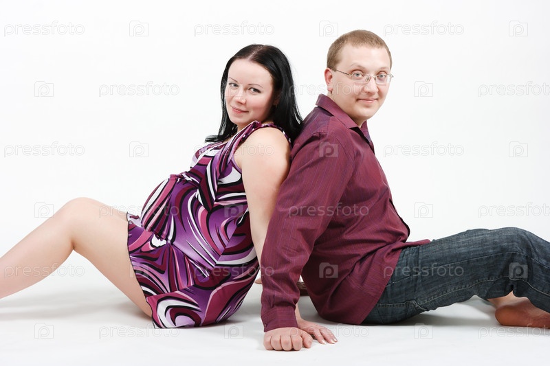 Молодая счастливая пара. Муж и беременная жена
