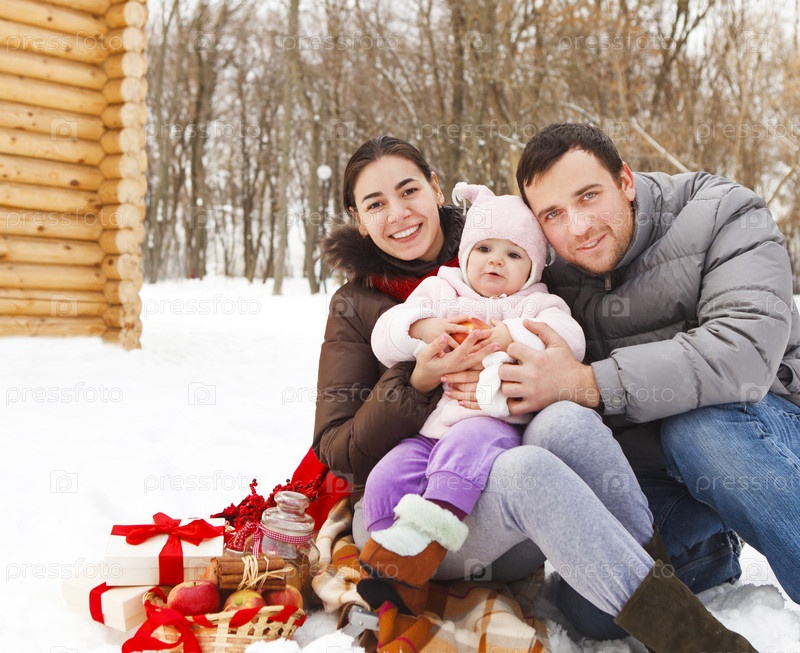 Счастливая семья на зимнем пикнике