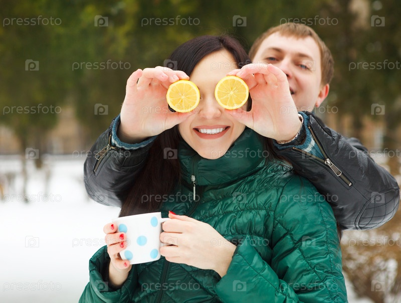 Счастливая молодая пара развлекается