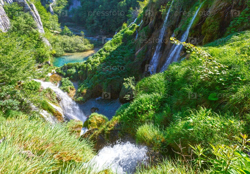 Водопады и травы в Национальном парке Плитвицкие озера (Хорватия)