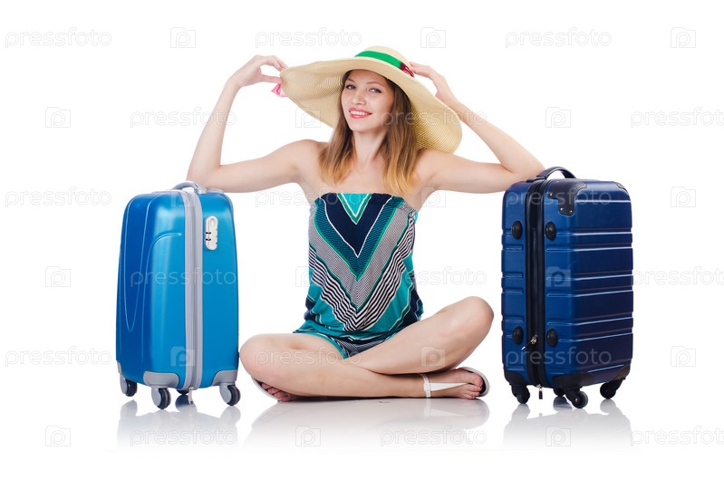 Женщина собирается на летние каникулы, изолированная на белом фоне