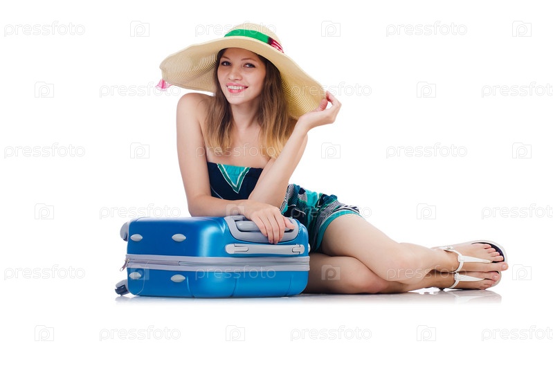 Женщина собирается на летние каникулы, изолированная на белом фоне