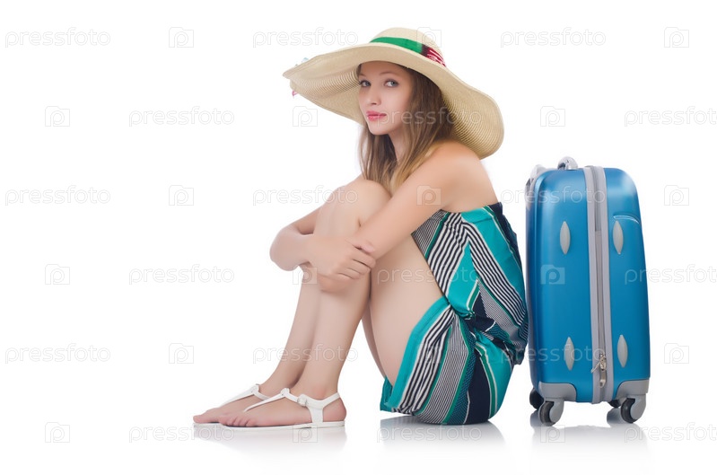 Женщина собирается на летние каникулы, изолированная на белом фоне