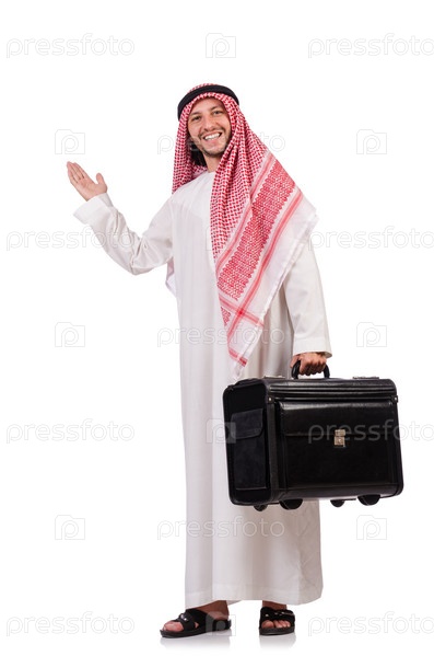 Араб с багажом на белом фоне