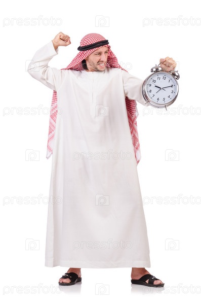 Араб в концепции времени на белом фоне