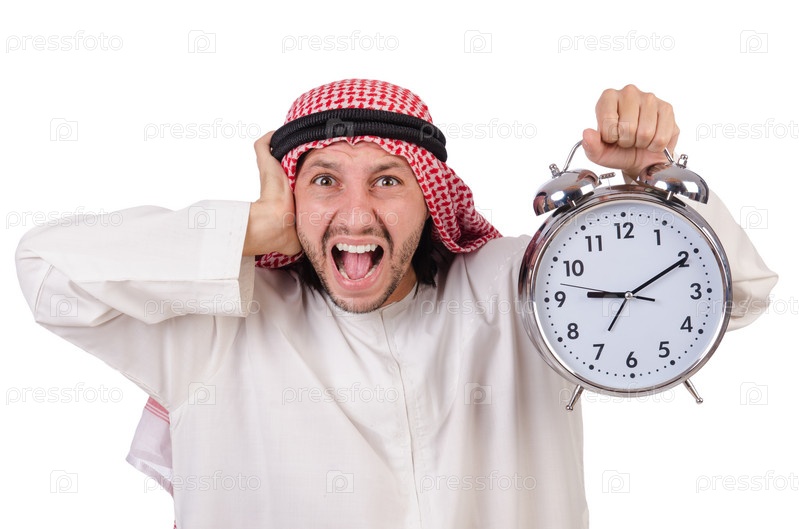 Араб в концепции времени на белом фоне