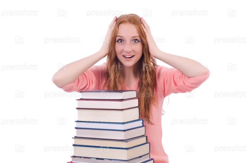 Молодая студентка, изолированная на белом