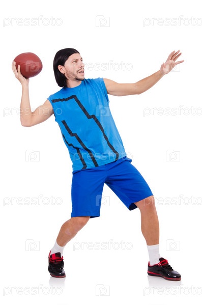 Молодой американский футболист на белом фоне