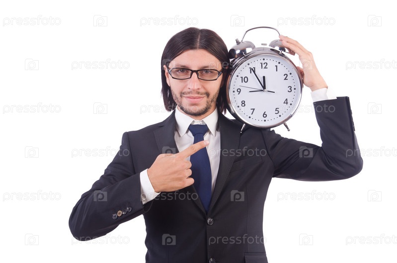 Бизнесмен с часами, изолированный на белом