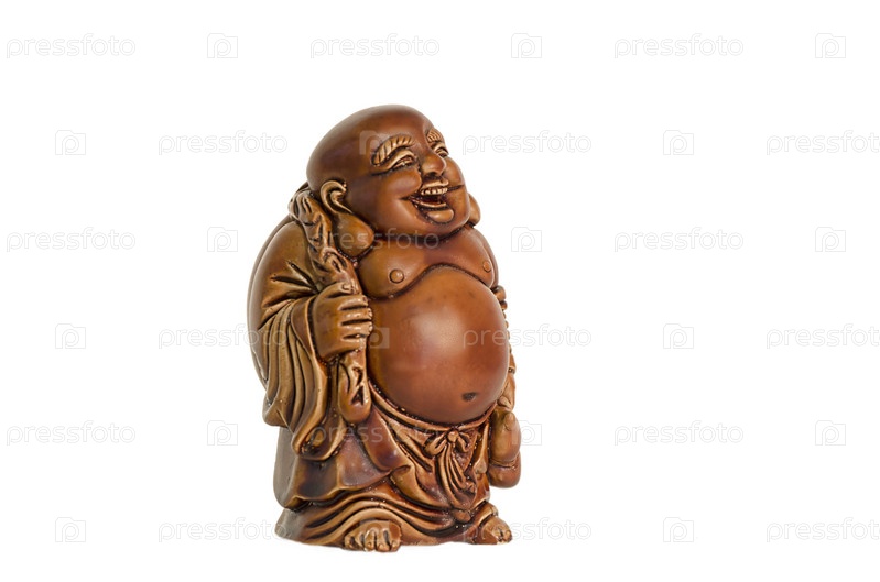 Статуэтка смеющегося Будды на белом фоне