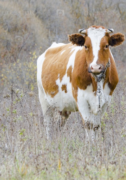 Бело-рыжая корова крупным планом