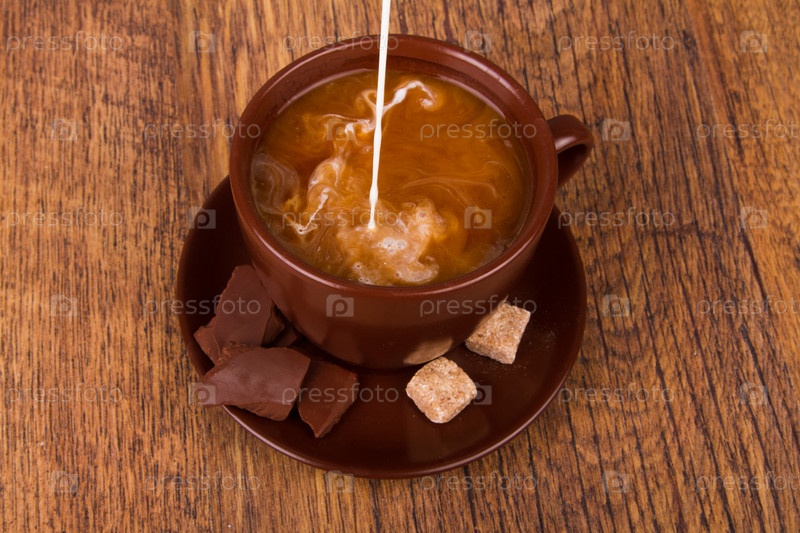 Чашка кофе и льющееся молоко