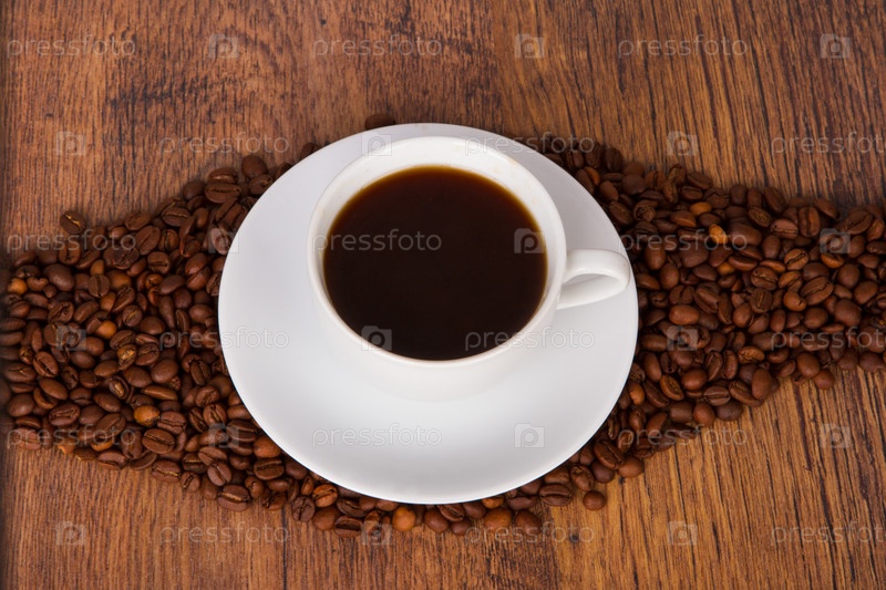 Чашка кофе и свежий кофе в зернах