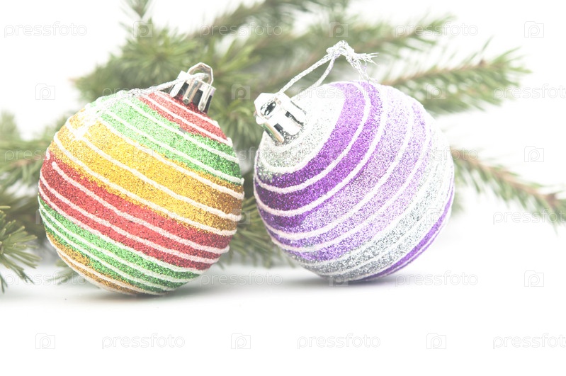 Рождественская композиция - ветви елки и елочные шары